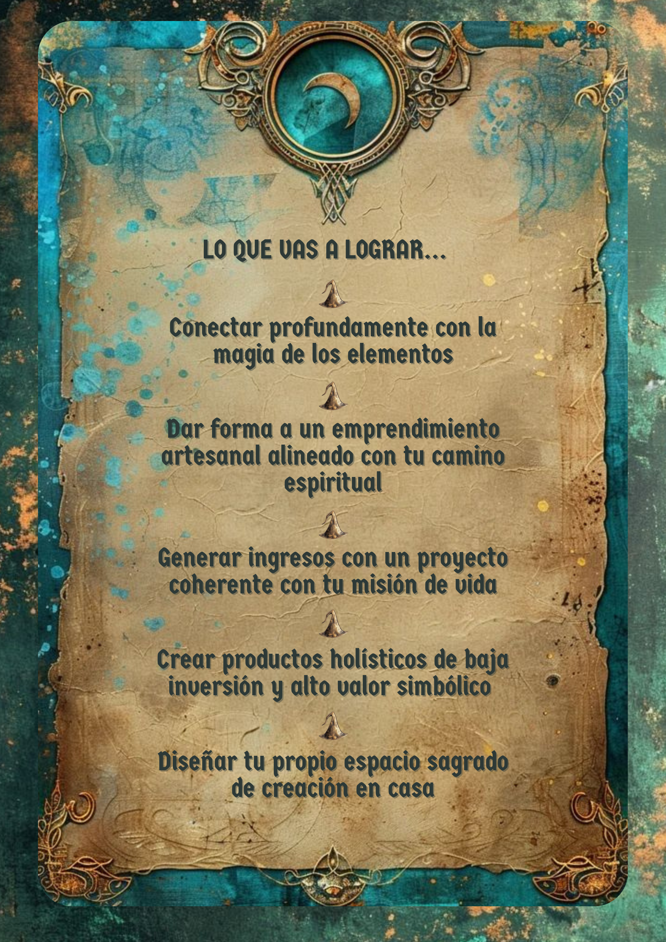 Además, te acompaña a transformar tu magia en un emprendimiento consciente: desde crear piezas auténticas hasta darles forma, presentarlas y prepararte para generar ingresos